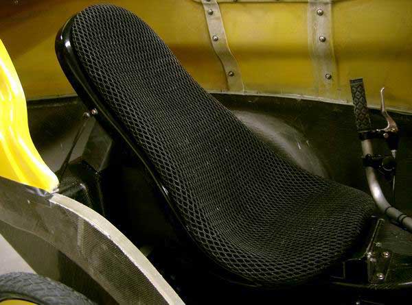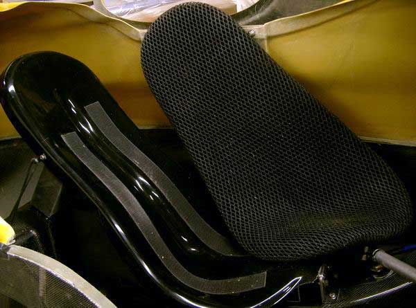 A couple of pictures of the seat and the seat pad. I am now using the Ventisit pad for which Bluevelo is the North American distributor. I have been using it for over a month now and find that it provides almost as much ventilation on a hard shell seat as a mesh seat does. With some holes cut in the hard shell there may not be much to choose between the two kinds of seats. The version of the pad being used is the comfort version which provides just the right amount of cushioning. I can highly recommend to pad.