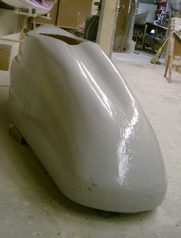 Rear view with the stern shape and the wheel wells still being developed. The stern will be more rounded than shown in the picture. The flat at the back will rest on the ground when the fairing is opened(see picture below titled "getting in").